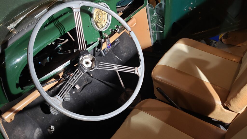 Moggy came to us from Vermont by way of an antique car dealer in Connecticut. Before long, he was shipped all the way to San Antonio, where we rolled up our sleeves and began the restoration. It turned out to be far more work than we imagined — but also far more rewarding. Every bolt tightened and piece of wood cut carried us deeper into a shared love of history, craft, and creation.